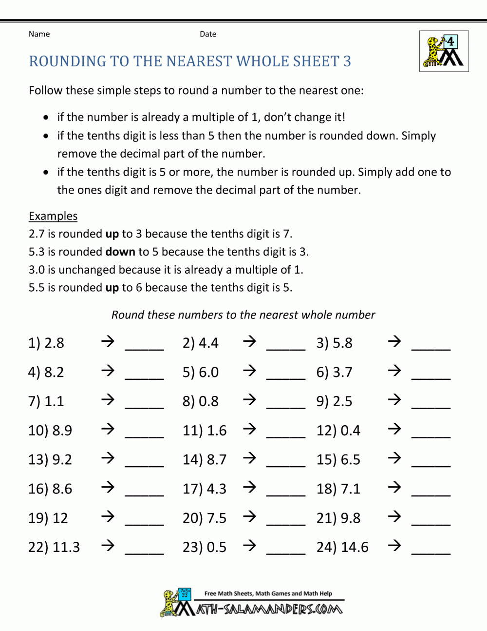 Rounding To The Nearest Whole Sheet 3