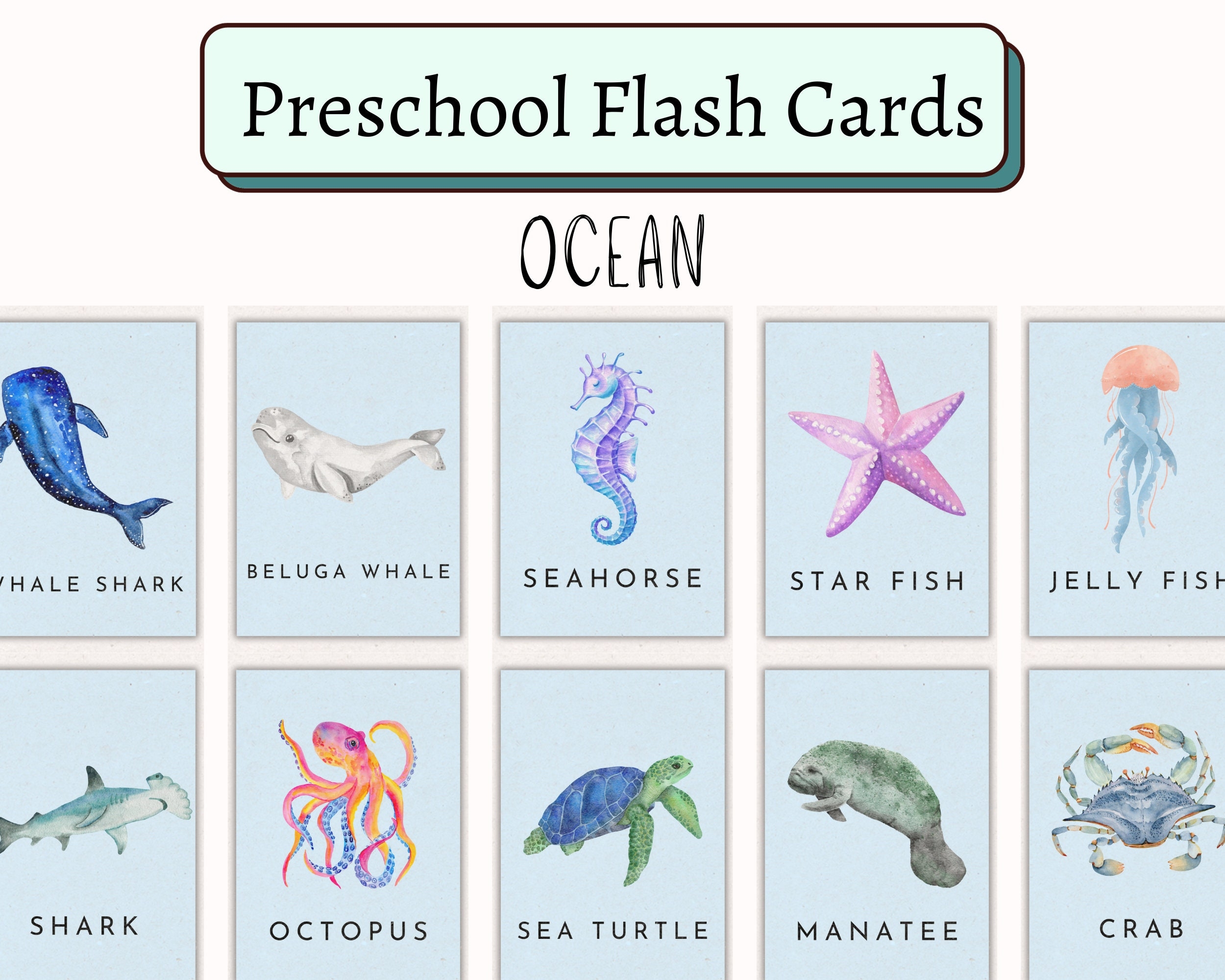 Sea Animal Flashcards 24 Animal Flashcards Sea Animals Learning Flashcards Etsy