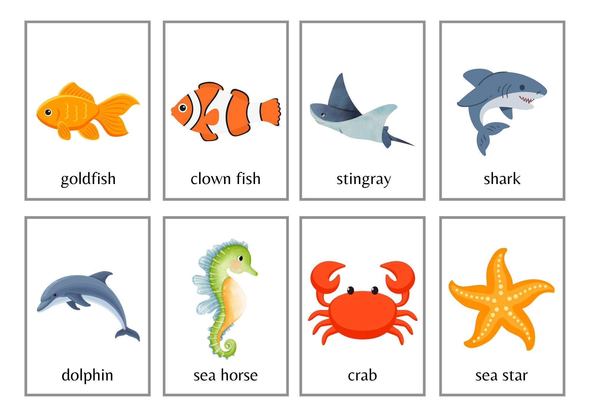 sea creatures flashcards