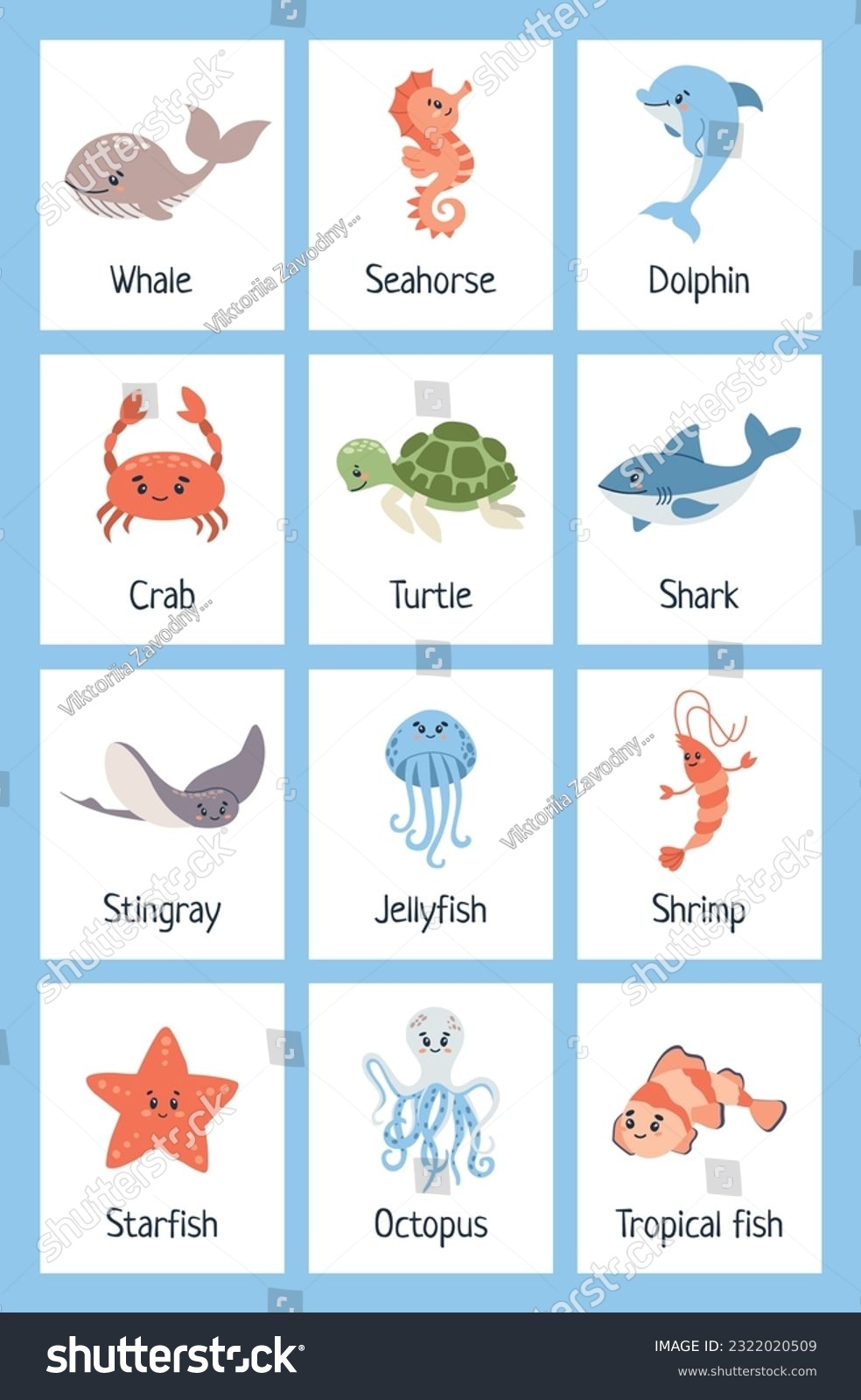 Sea Animal Flashcards Learning Ocean Vocabulary Stock Vector Royalty Free 2322020509 Shutterstock