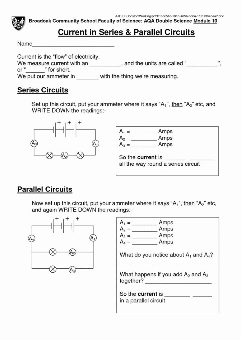 Series And Parallel Circuits Worksheet Elegant Series amp Parallel Worksheets Library
