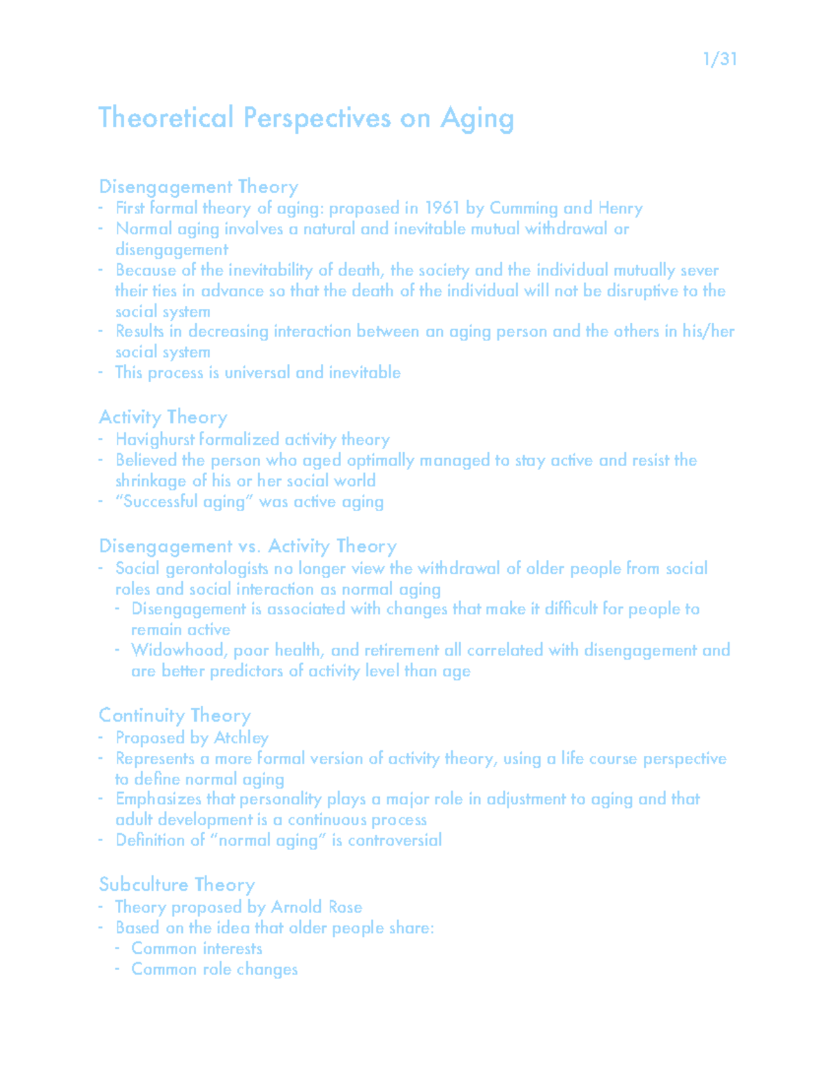Theoretical Perspectives On Aging 1 Theoretical Perspectives On Aging Disengagement Theory Studocu