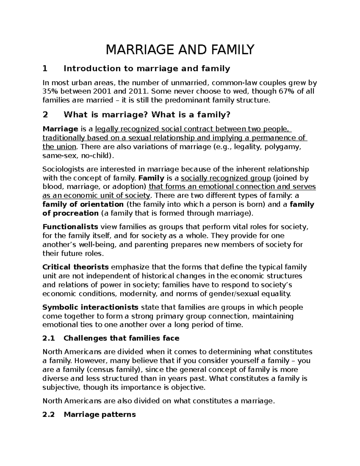 14 Marriage And Family MARRIAGE AND FAMILY 1 Introduction To Marriage And Family In Most Urban Studocu