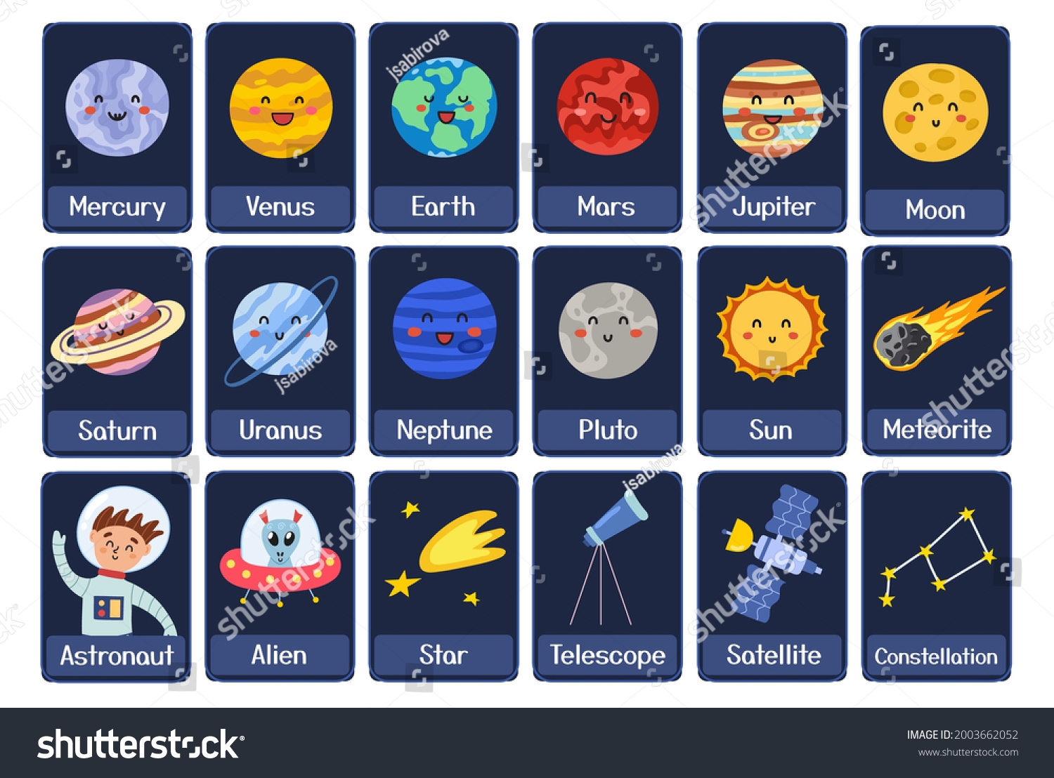 Weltraumkarten F r Kinder Erziehungskarten Mit Planeten Stock Vektorgrafik Lizenzfrei 2003662052 Shutterstock