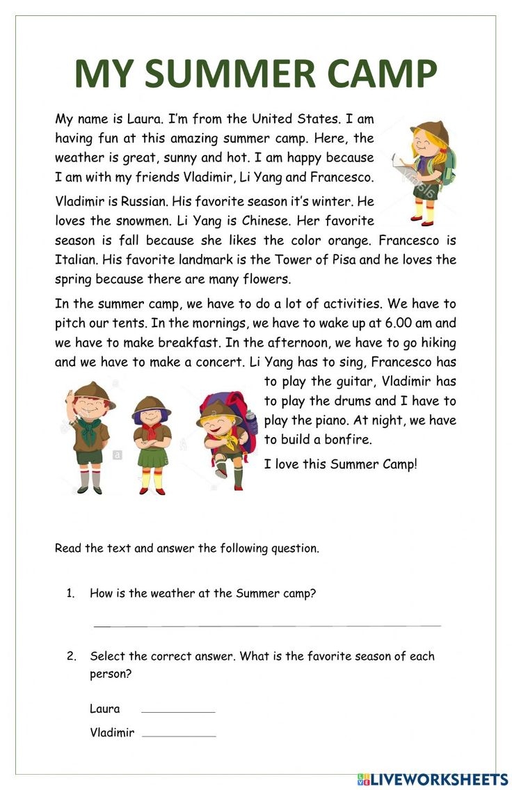 My Summer Camp Interactive Worksheet