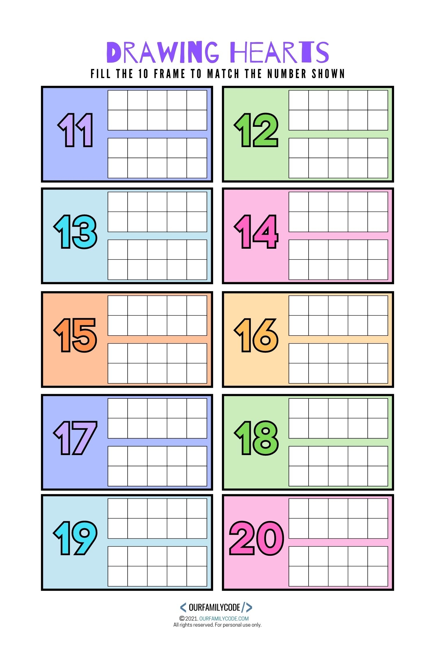In addition to building number sense, ten frame math worksheets also improve children’s problem-solving skills. Kids are encouraged to think critically and strategically as they fill in the ten frames and solve math problems, helping them develop important cognitive skills that will benefit them in all areas of learning.