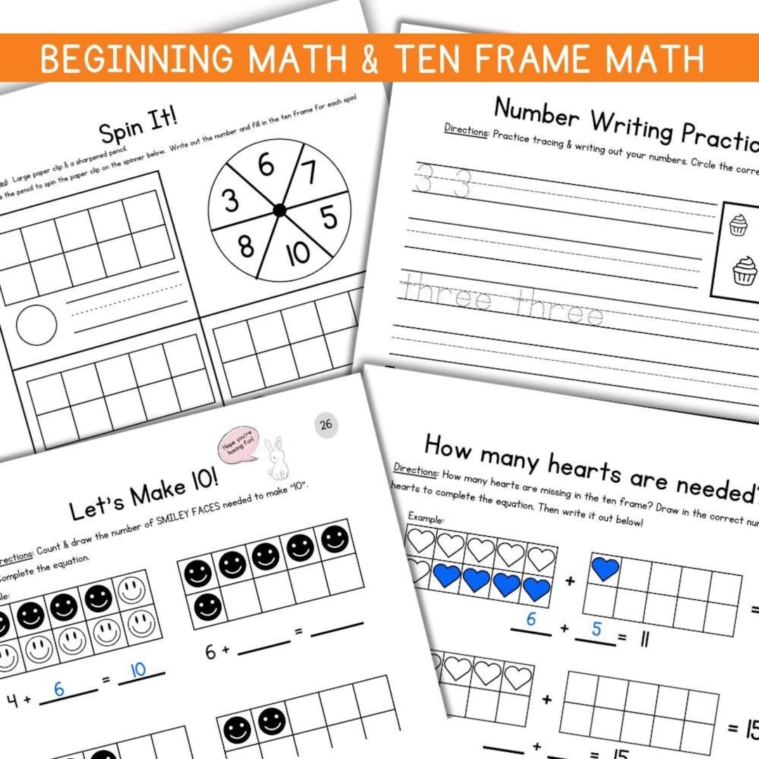 Ten Frames Kindergarten Math Worksheet Set 50 Pages For Beginning Addition Subtraction Number Correspondence Etsy