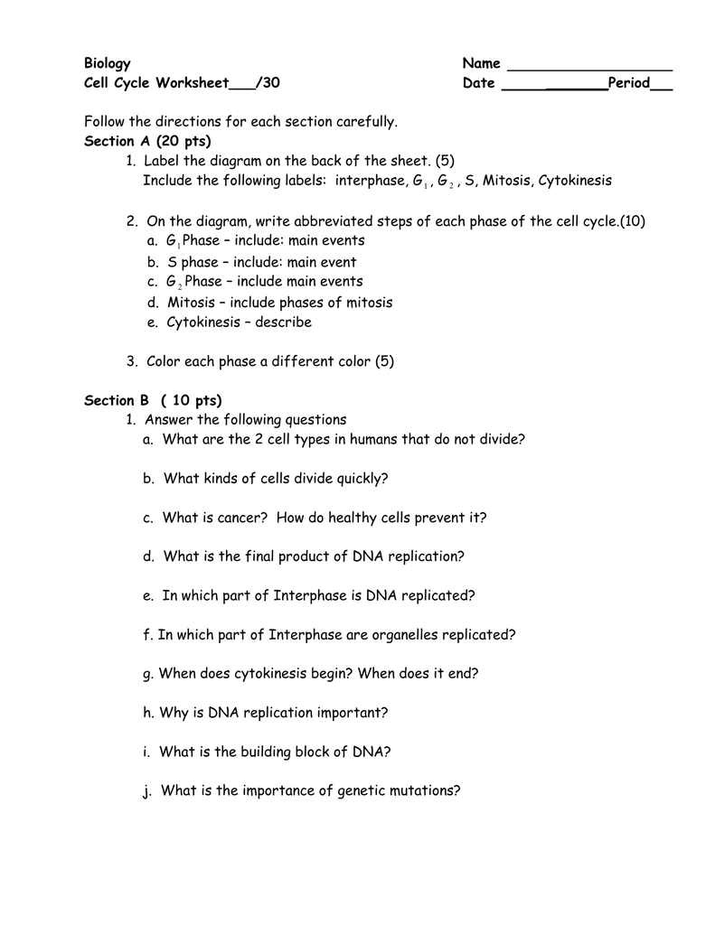 Cell Cycle Worksheet Labeling And Coloring Activity Studocu