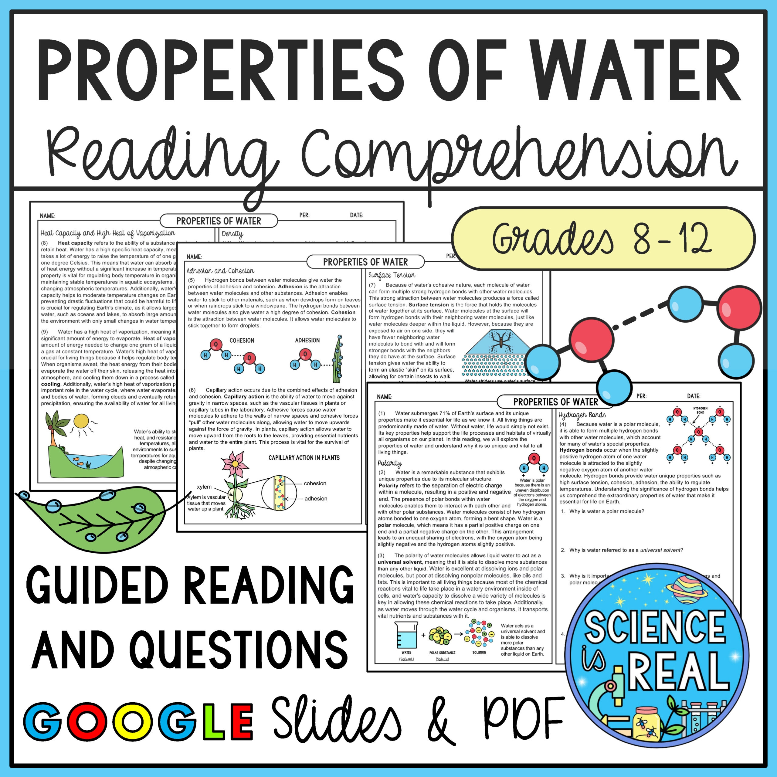 Distribution Of Water On Earth The Hydrosphere Science Reading Comprehension Etsy