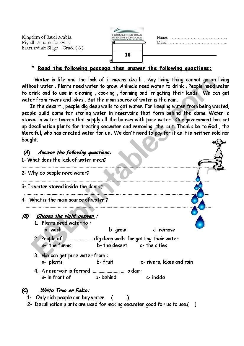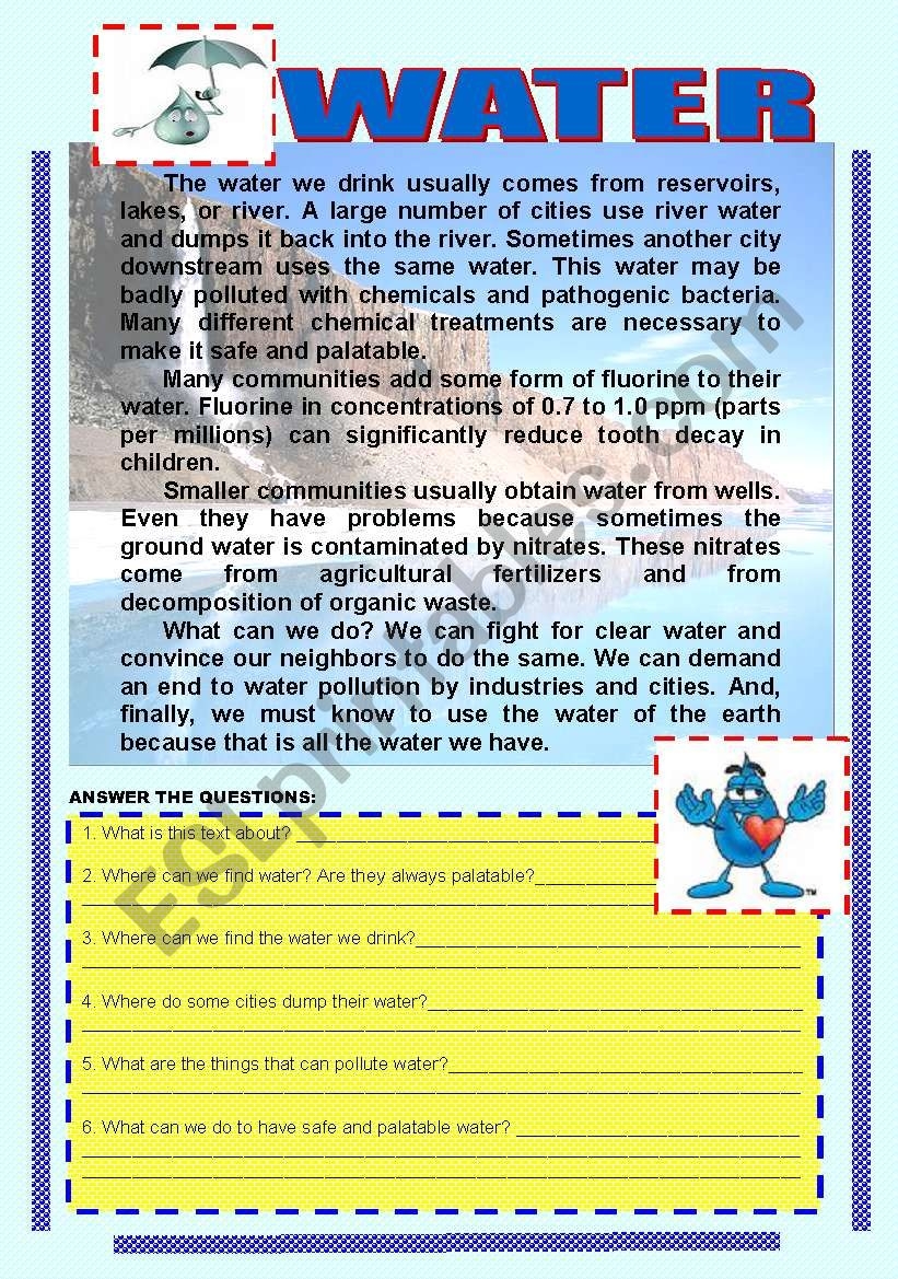 Reading Comprehention Water ESL Worksheet By Mshmsh