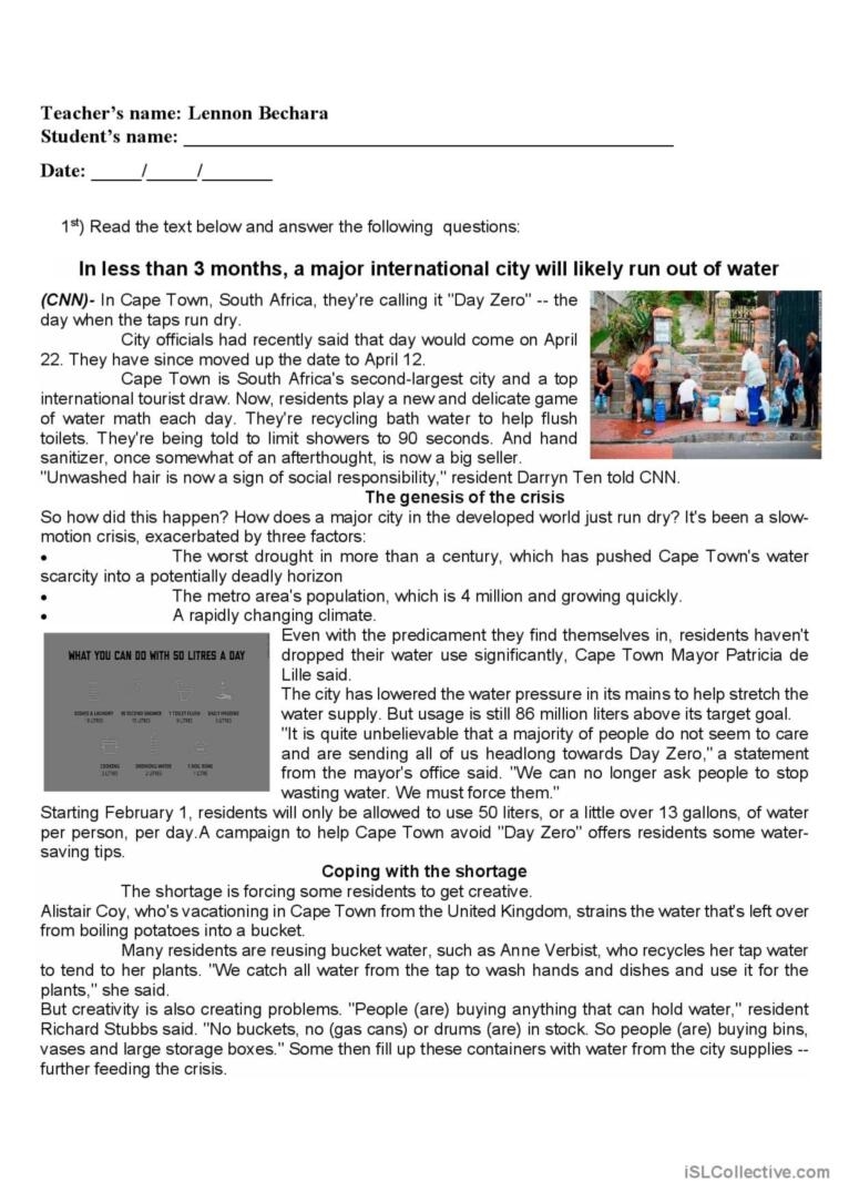 Water Issue Reading Comprehesio English ESL Worksheets Pdf Doc